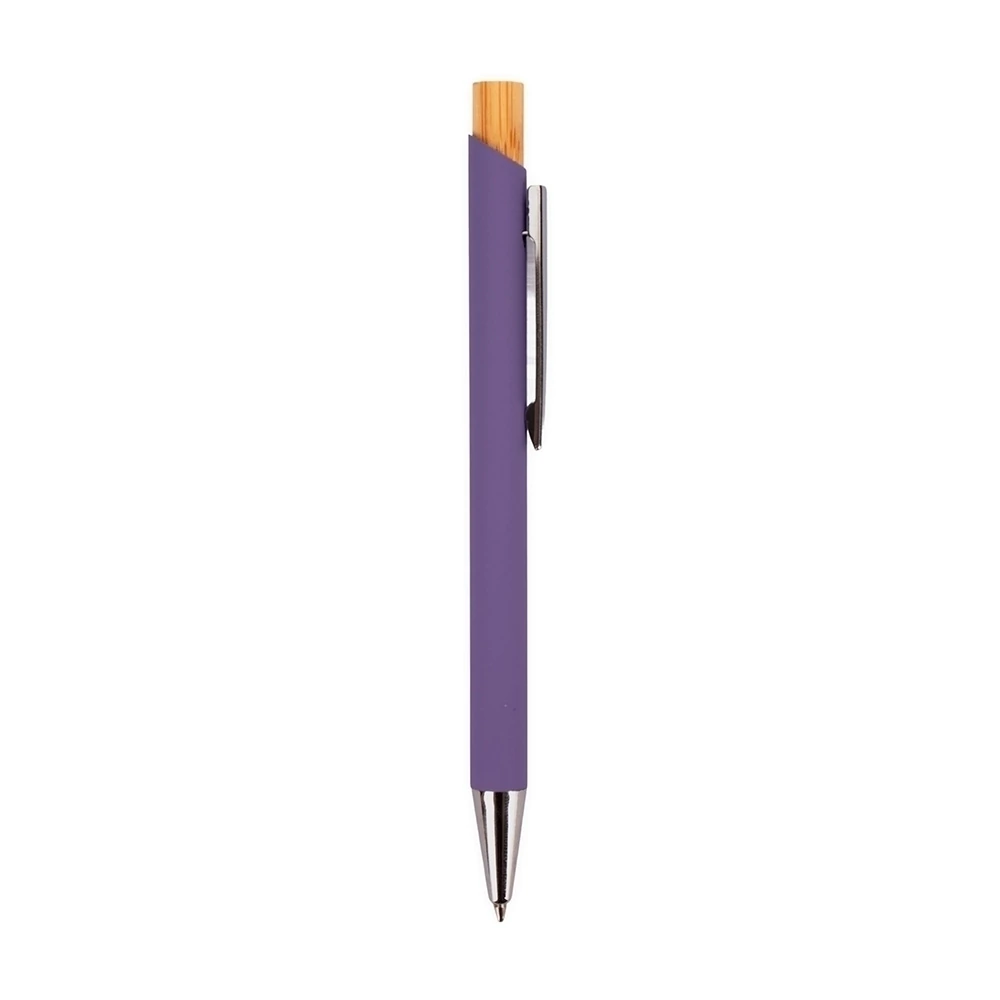 Descrição: Caneta esferográfica com carga azul de 1.0mm. Possui construção metálica e acionamento por clique em bambu, o que proporciona uma pegada leve e maior precisão durante o uso.