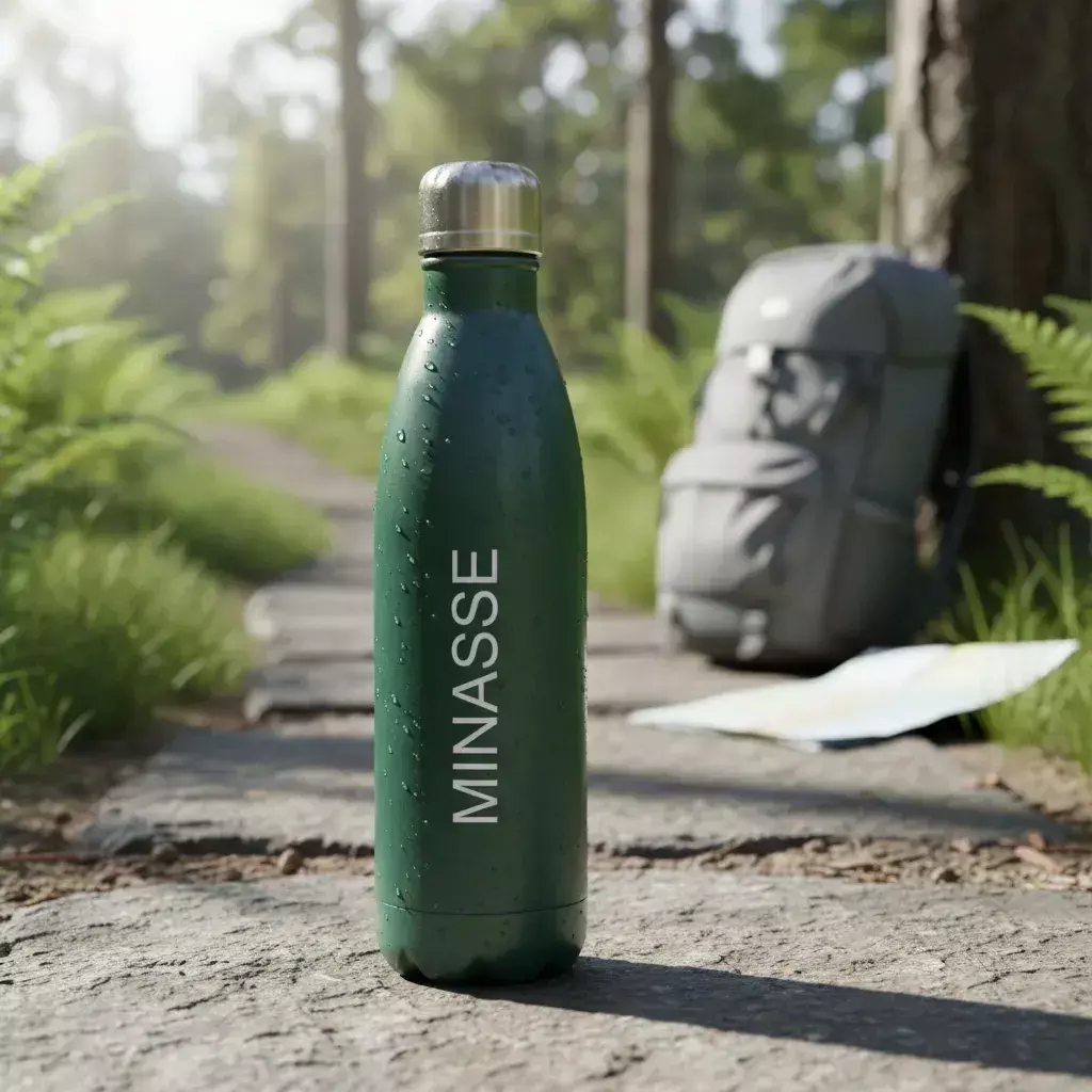 Descrição: Garrafa 750ml em inox com tampa rosqueável e pintura fosca. Obs.: Não é um modelo térmico.