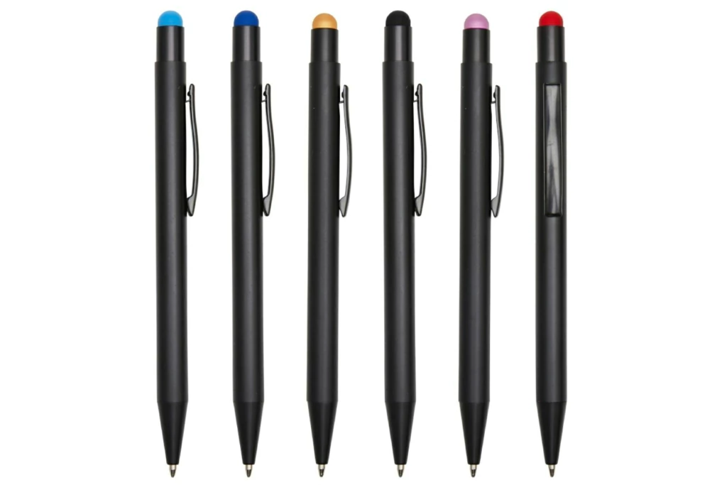Descrição: Caneta metálica com touch screen, carga esferográfica azul 1.0mm e acionamento por clique. Ao ser personalizada a laser, o corpo da caneta adotará a mesma cor da borracha touch, com a exceção da cor preta, que permanecerá em prata.