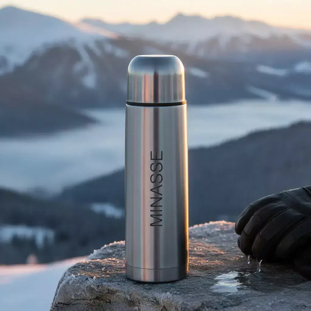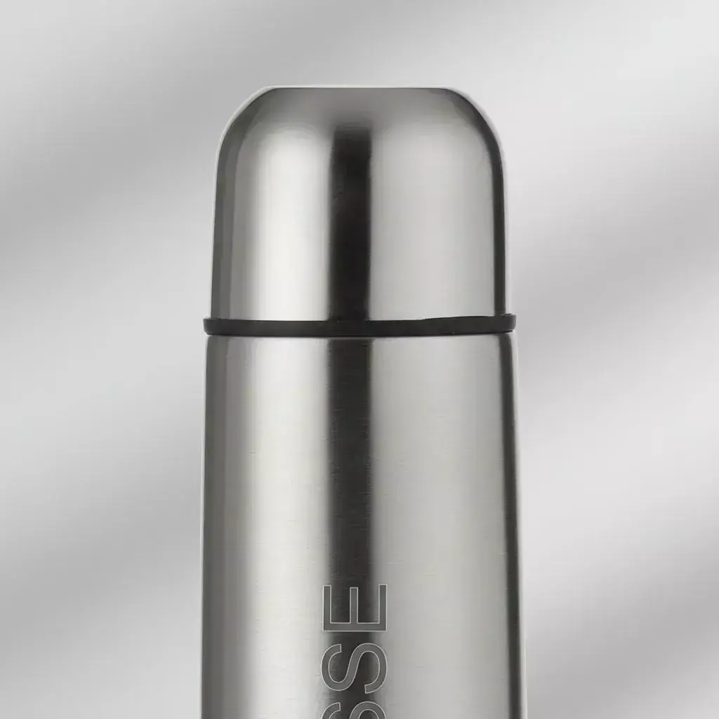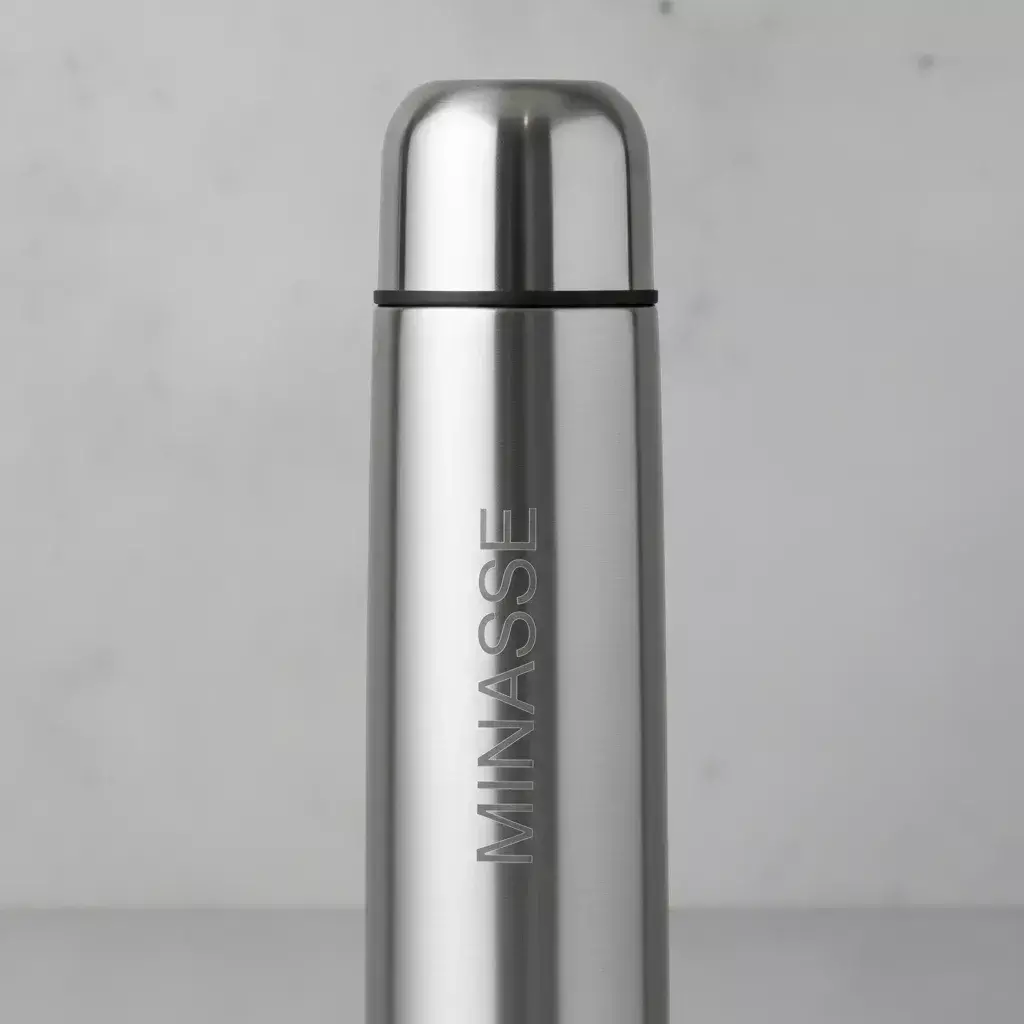 Descrição: Garrafa térmica 500ml em inox com tampa rosqueável, tampa interna em plástico resistente(basta um clique para abrir ou fechar). Acompanha capa protetora de couro sintético com alça de nylon.