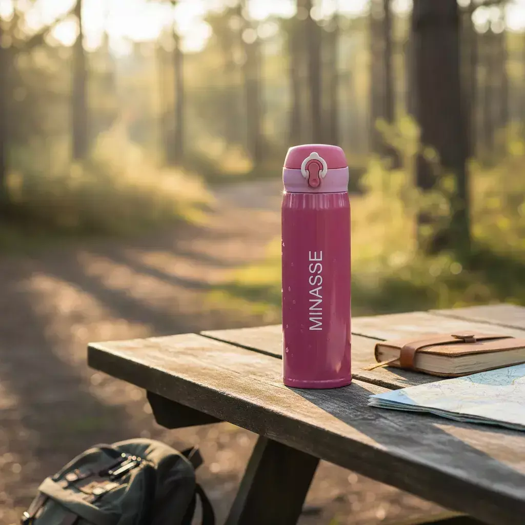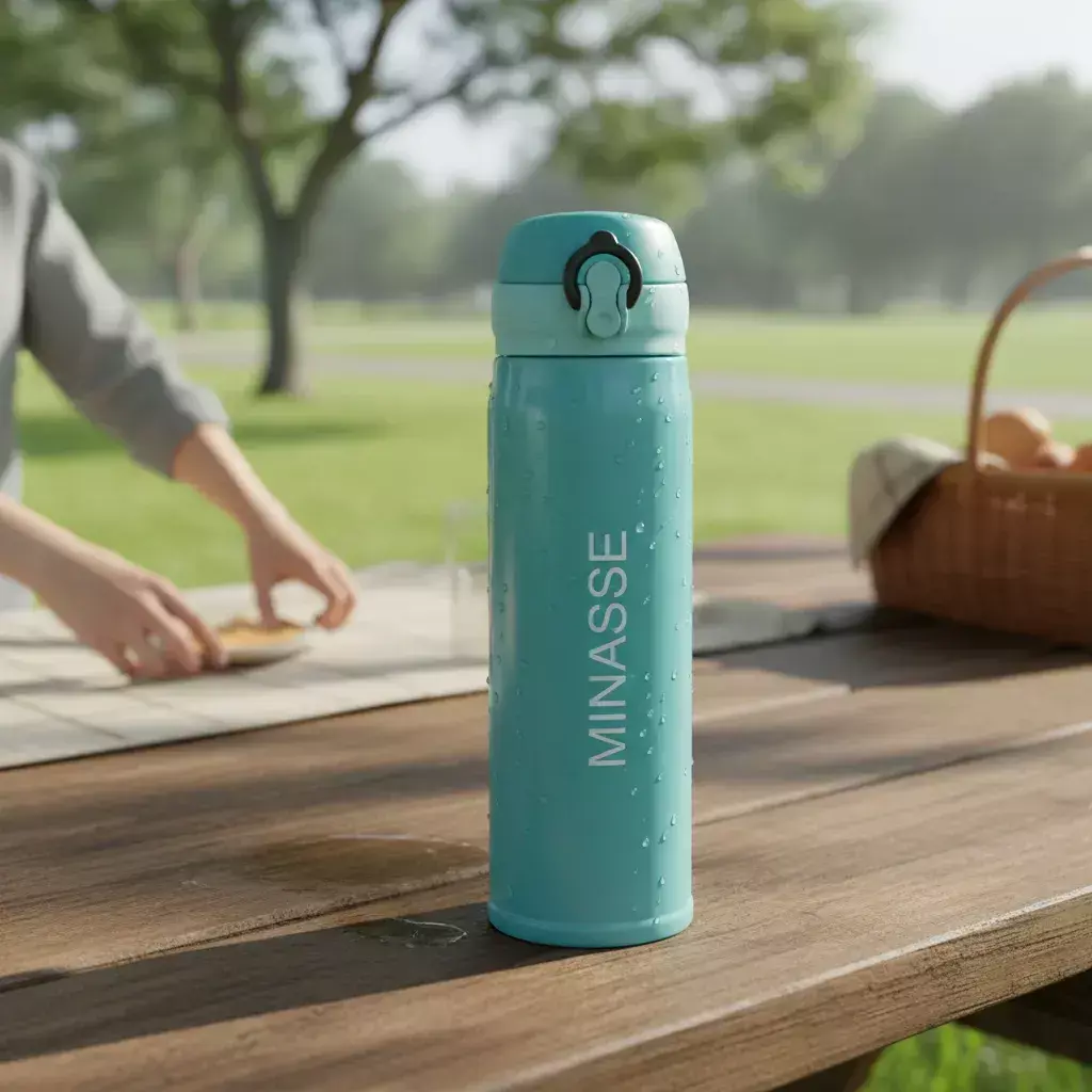 Descrição: Garrafa térmica de 400ml de inox colorida com botão e válvula para abertura. Possui um sistema de trava (basta mover para cima/baixo para abrir/fechar), pressione o botão central para abrir a tampa(possui na parte interna borracha protetora evitando vazar o líquido). Para abrir a tampa por completo basta rosqueá-la, parte interna revestida em inox. Na embalagem do produto pode ir especificado a capacidade de 450ml ou 500ml devido aos fabricantes que trabalham terem impresso a descrição deste modo, porém ressalvamos a capacidade correta de 400ml.