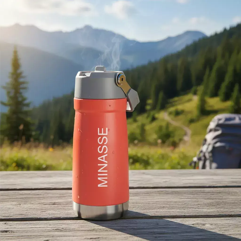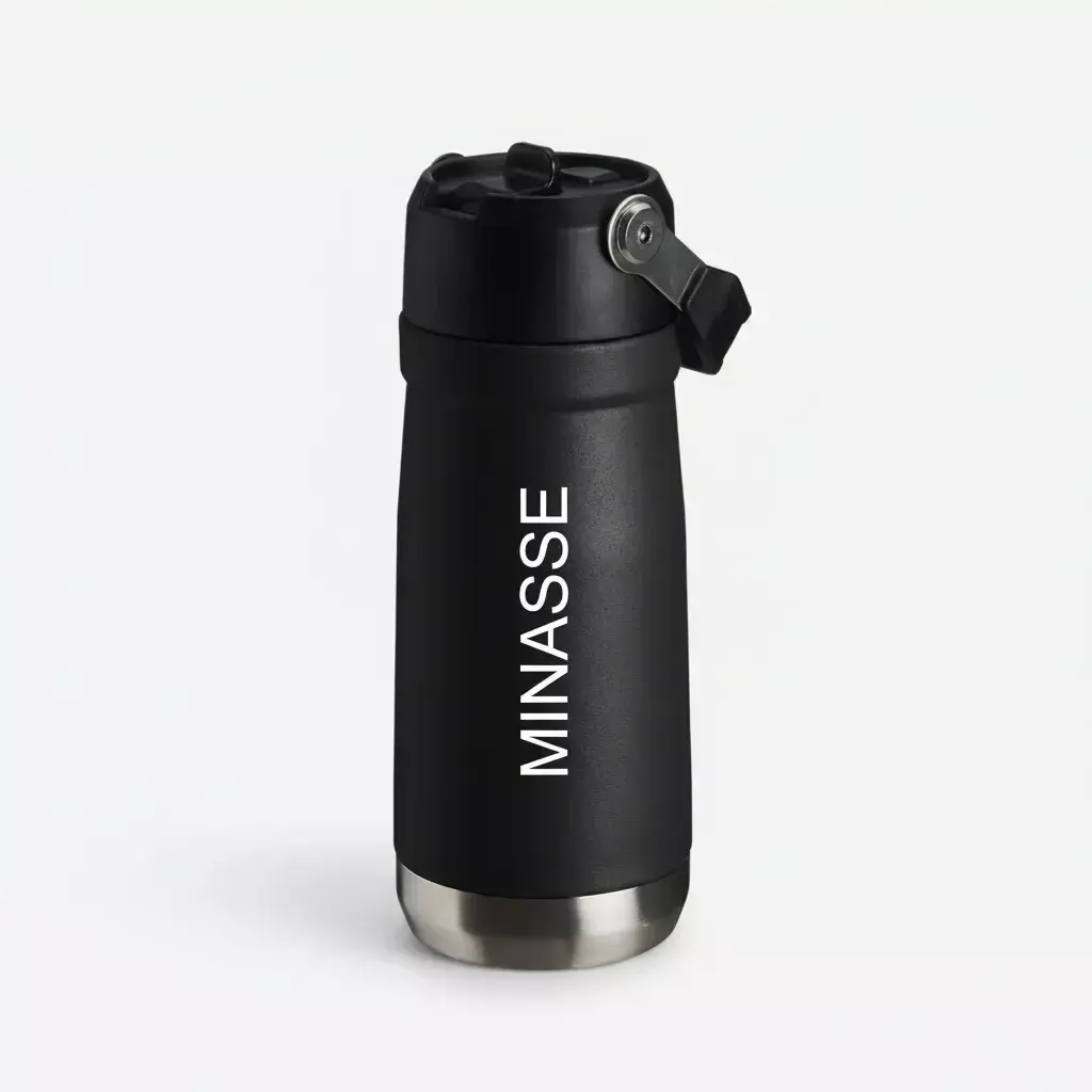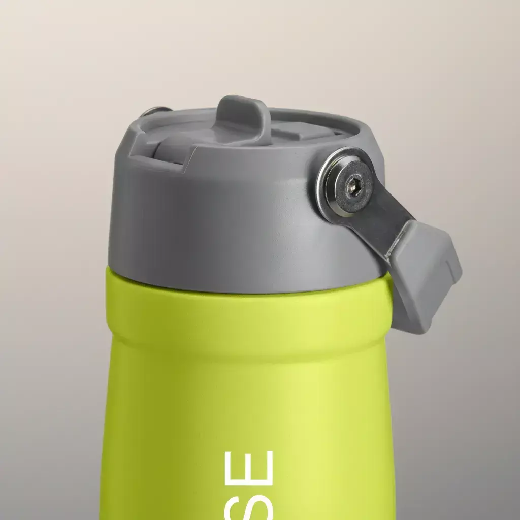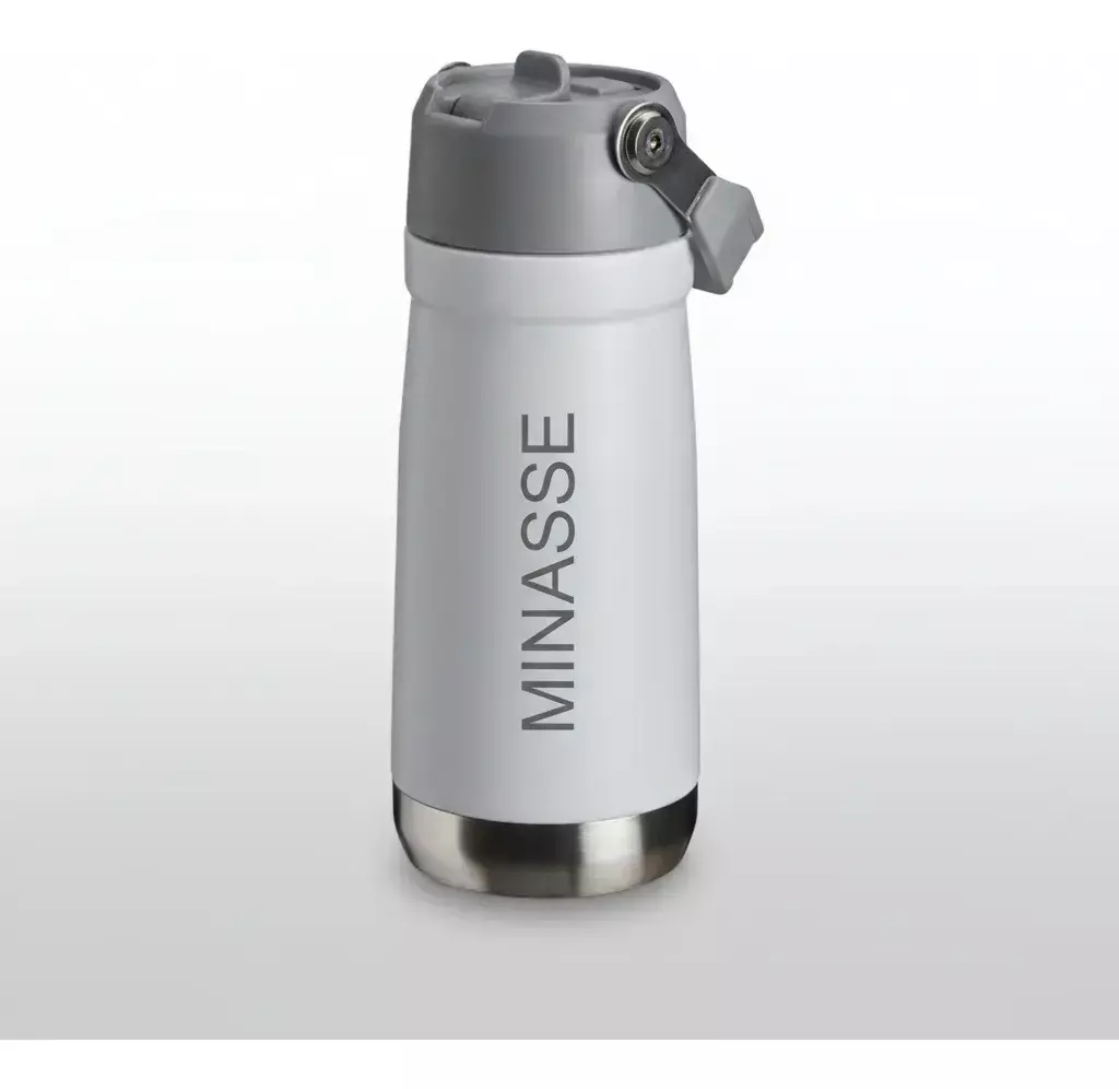 Descrição: Garrafa térmica de parede dupla em inox, capacidade de 600ml. Tampa com alça de transporte, bico flip e canudo interno.